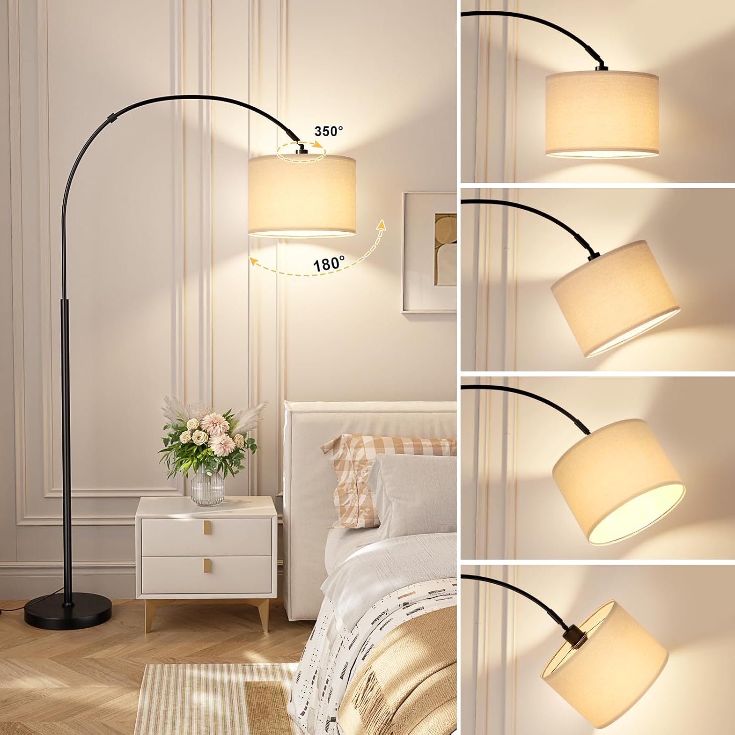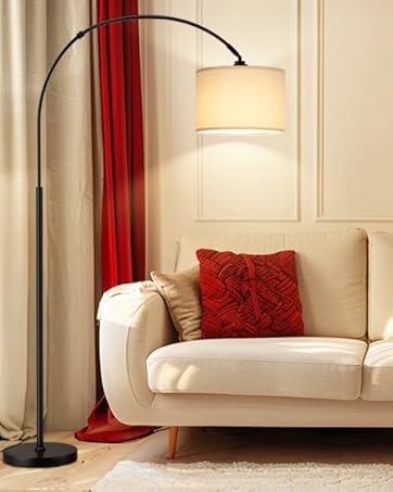 Ambimall 70" Dimmable Arc Floor Lamp with Remote, Color Temperature and Brightness Adjustable, Arched Floor Lamp with Rotating Head, Over Couch Arched Reading Light for Living Room (Beige and Black)