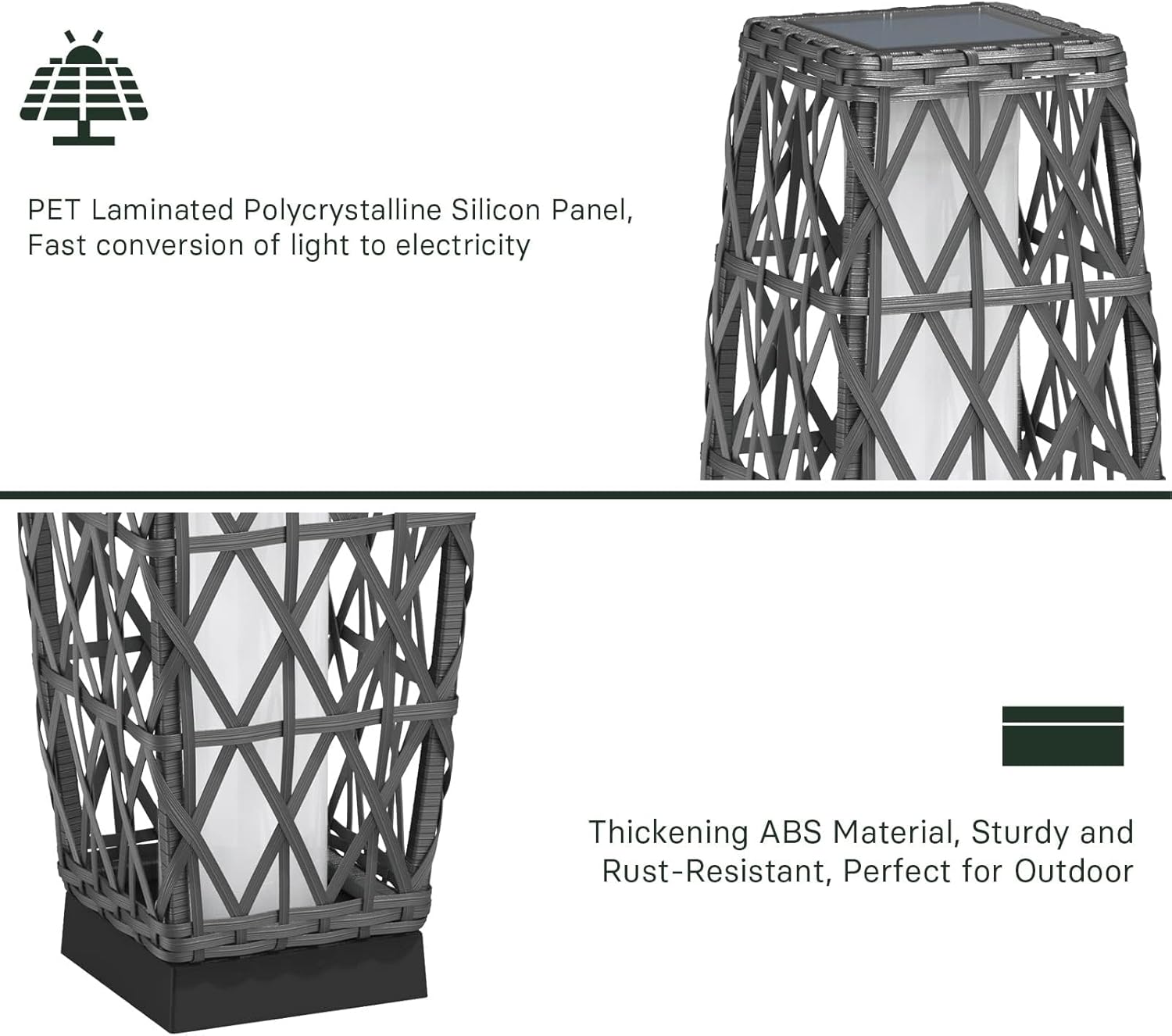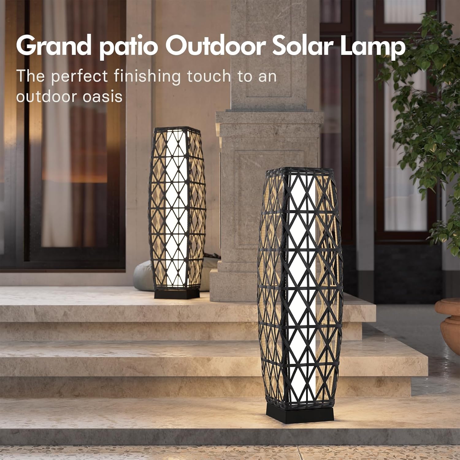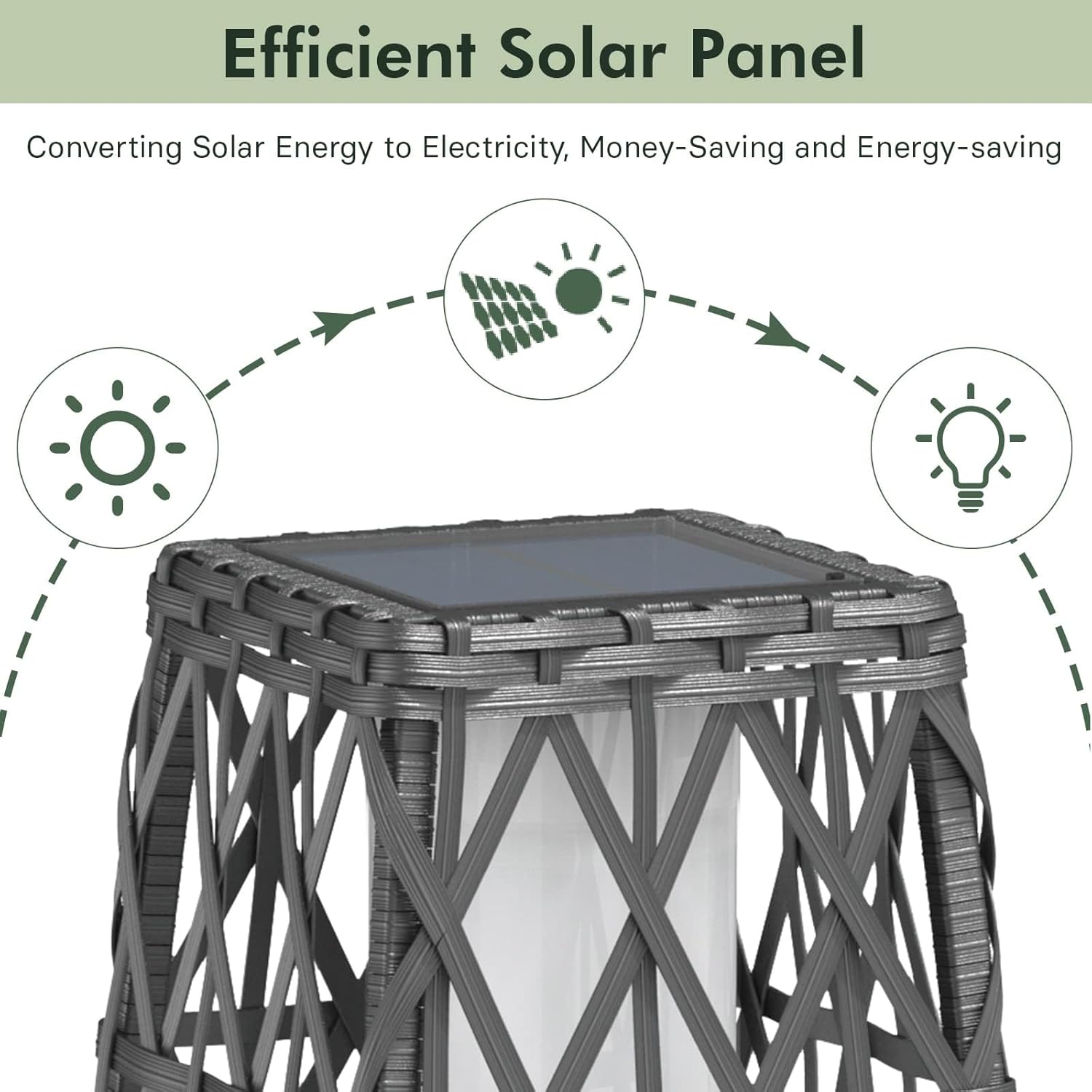 Grand patio 2-Piece Outdoor Solar-Powered Woven Wicker Lantern Floor Lamp Decoration for Deck Garden Lawn Porch - Medium Cindy, Silver Gray