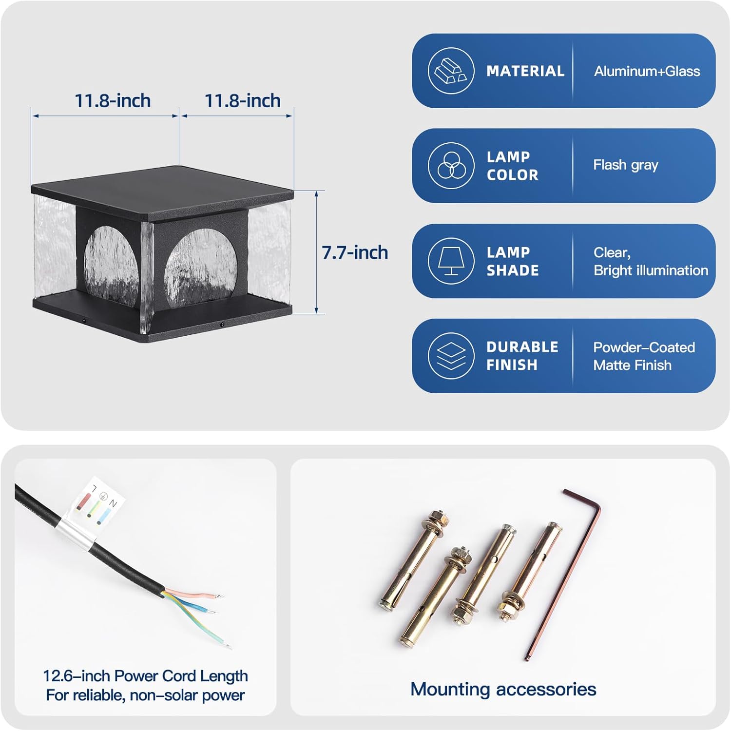 Outdoor Post Lights, 11.8" Pillar Light Hardwired, IP54 Waterproof Column Lamp 3000K LED Lantern Patio Modern Fence Lighting for Garden Yard Gate Walkway Landscape Outside Decorations