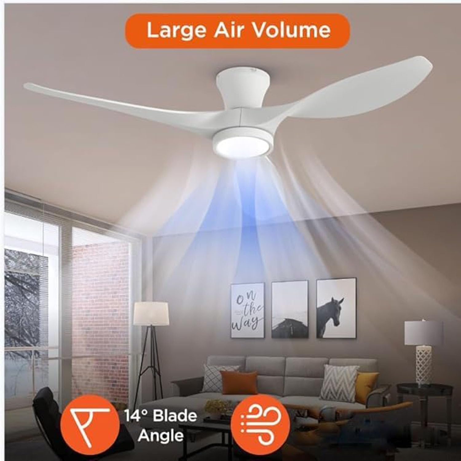 TALOYA 52 inch Ceiling Fans with Lights Remote Control, Modern Low Profile Ceiling Fan with Quiet Reversible DC Motor for Bedroom Living Room and Patio White