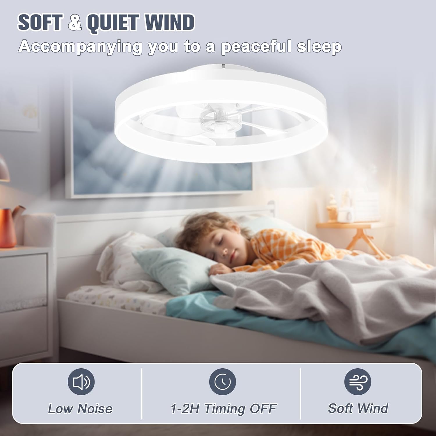 VOLISUN Low Profile Ceiling Fans with Lights and Remote, 19.7in Fandelier Ceiling Fan Flush Mount, 3000K-6500K Smart Bladeless LED Fan Light, White Modern Ceiling Fans with Lights for Bedroom
